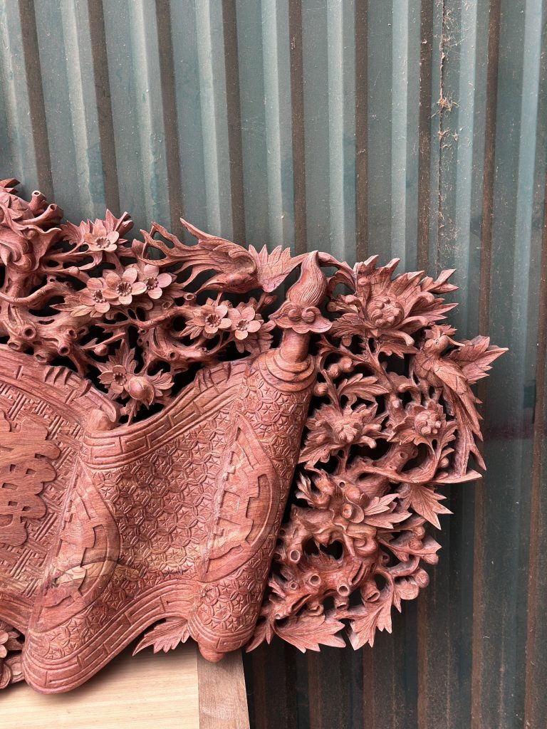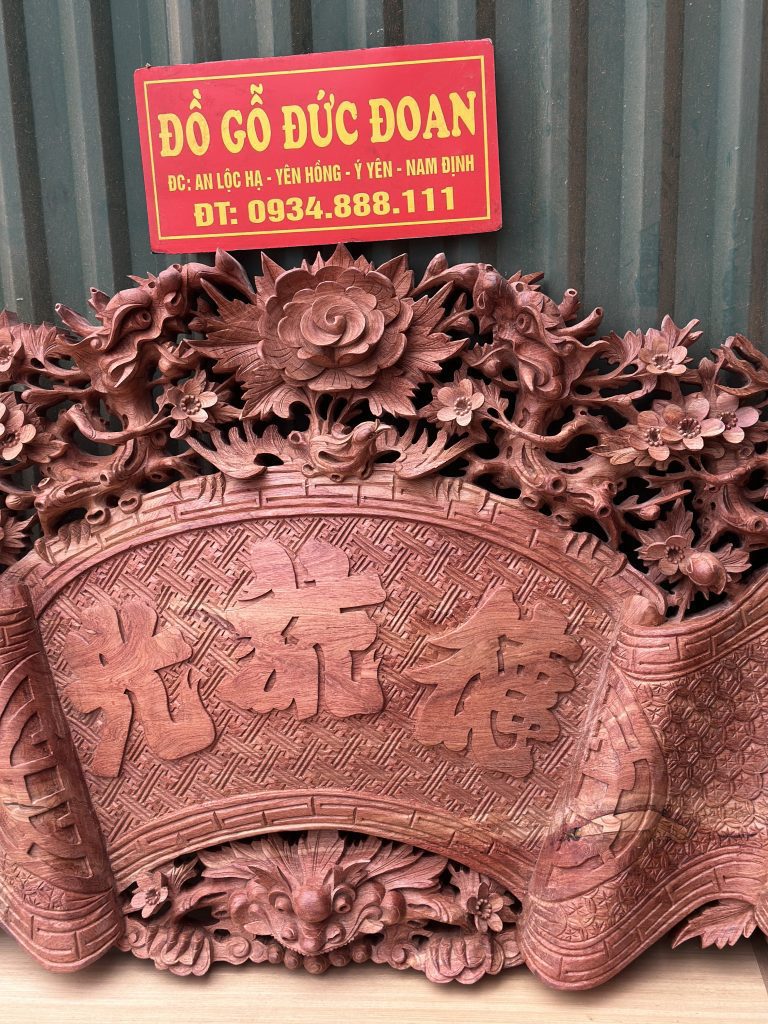 Cuốn thư đại tự liền khốiBộ cuốn thư mai hóa long liền khối Đăng vào 09/11/202510/11/2025 bởi admin Chất liệuGỗ Hương Đá Nam PhiDài197cmRộng81cmDày10cmGỗ liền khốikhông chắp ghépĐục chạm thủ công100% bằng tay