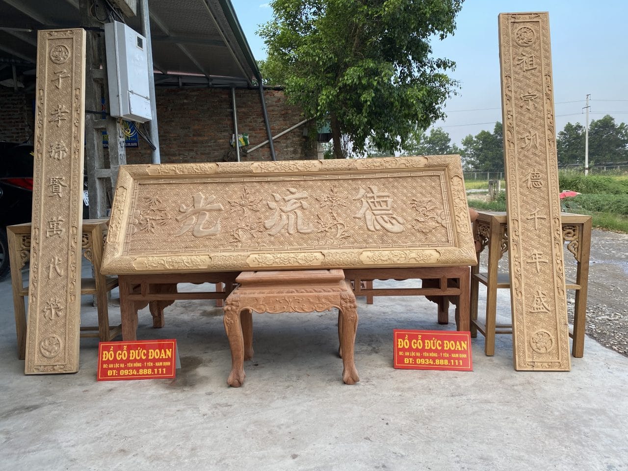 Vua Sập Thờ Chuyên chế tác sập thờ liền khối gỗ Gõ Đỏ, Gụ Lào, Hương, Mít chuẩn phong thủy. Cam kết gỗ lõi 100%, đục tay thủ công tinh xảo.