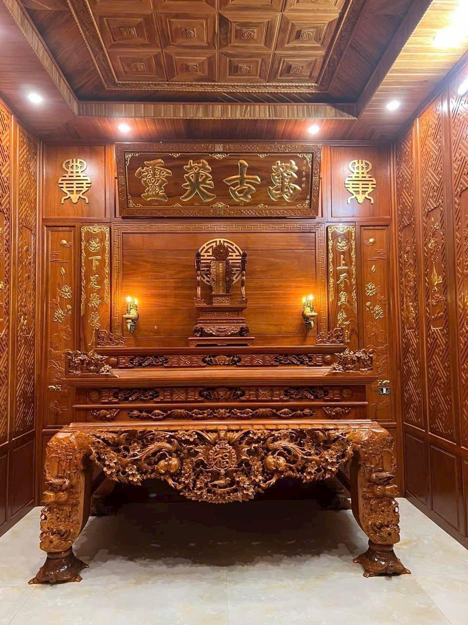 Vua Sập Thờ Chuyên chế tác sập thờ liền khối gỗ Gõ Đỏ, Gụ Lào, Hương, Mít chuẩn phong thủy. Cam kết gỗ lõi 100%, đục tay thủ công tinh xảo.