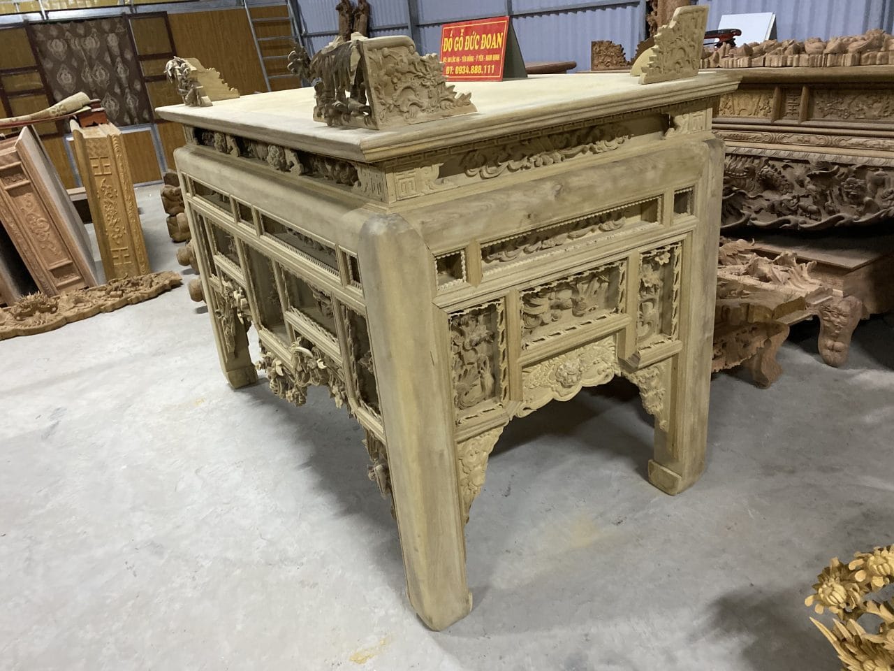 Vua Sập Thờ Chuyên chế tác sập thờ liền khối gỗ Gõ Đỏ, Gụ Lào, Hương, Mít chuẩn phong thủy. Cam kết gỗ lõi 100%, đục tay thủ công tinh xảo.
